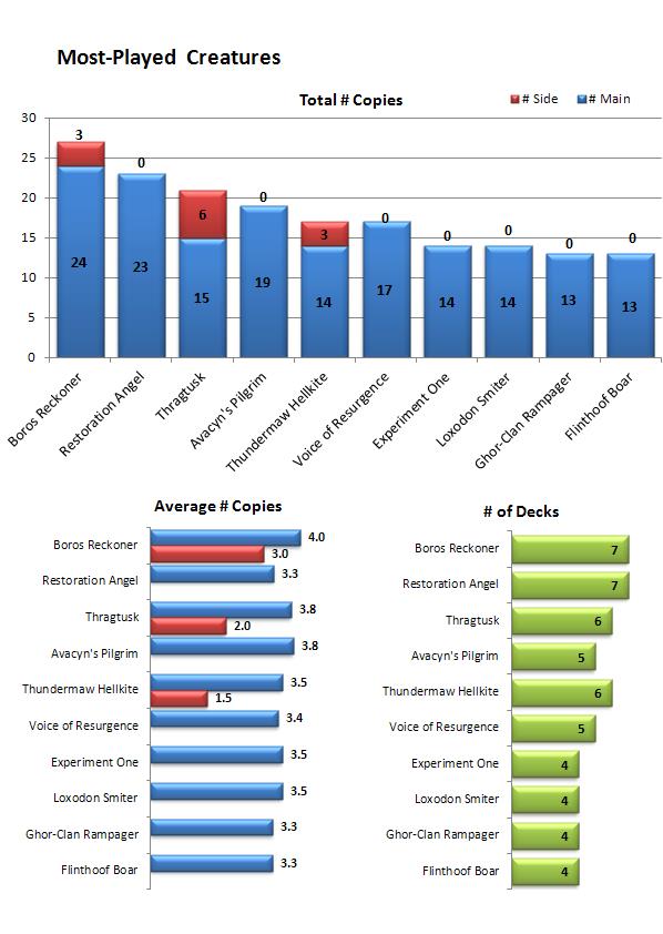 Thundermaw Hellkite has staged a big comeback in the metagame, appearing in six decks across four different archetypes. Here is the breakdown of top creatures by archetype: