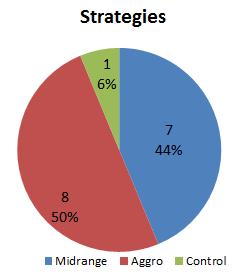 Here are the top sixteen decks from SCG Open: San Diego. I determined the average mana cost of the main deck and prices in dollars and Magic Online tickets by importing each decklist into the Decked Builder app. Dollars are from CoolStuffInc.com, and tickets are from MTGOTraders.com. The graphs display the strategies, colors, and most played archetypes of the Top 16.