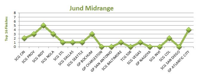 Jund midrange experienced something of a revival in Atlantic City. A quarter share of the Top 16 is the most impressive showing for the deck since SCG Open: Indianapolis back on October 20, 2012.