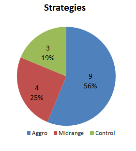 These are the top 16 decks from SCG Open Dallas. I determined the average mana cost of the maindeck, and prices in dollars and MTGO tickets by importing each decklist into the Decked Builder app. Dollars are from CoolStuffInc.com and tickets from MTGOTraders.com. The graphs display the strategies, colors, and most played archetypes of the top 16.