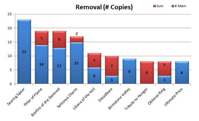 Now let’s take a look at the most played creatures and removal spells in the top 16 decks of the tournament.