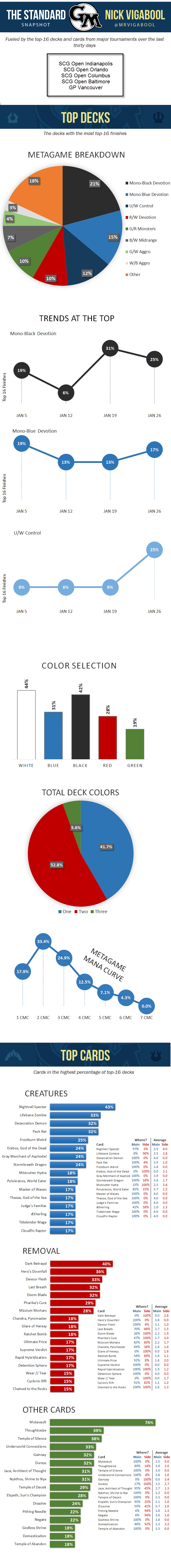Main » Articles » Standard SnapshotStandard Snapshot By Nick VigaboolPosted on January 29, 2014 Reddit TAGS articles, standard, metagame, constructed, analysis, data, nick vigabool, theros, graph