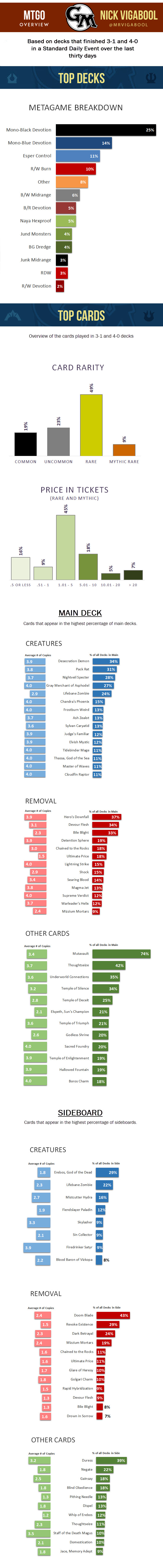 Main » Articles » Magic Online - Born of the Gods Standard OverviewMagic Online - Born of the Gods Standard Overview By Nick VigaboolPosted on April 15, 2014 Reddit TAGS articles, standard, constructed, magic online, analysis, modo, mtgo, infographic, nick vigabool