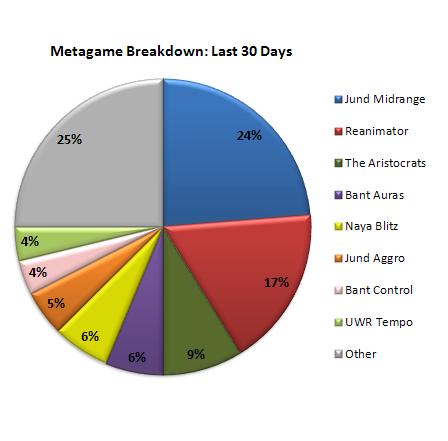 No change at the top, where Jund Midrange and Reanimator continue to battle it out for the best deck of the format. Jund has the numbers, but Reanimator had better finishes this week.