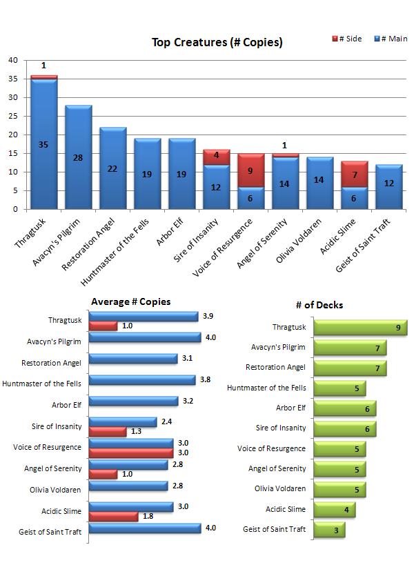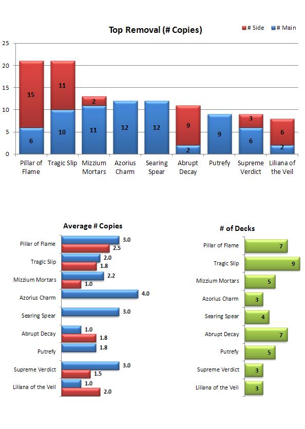 The charts and graphs below provide some information about what creatures and removal saw the most play in the Top 16 decks of SCG Open: New Jersey so that you can build and plan accordingly.