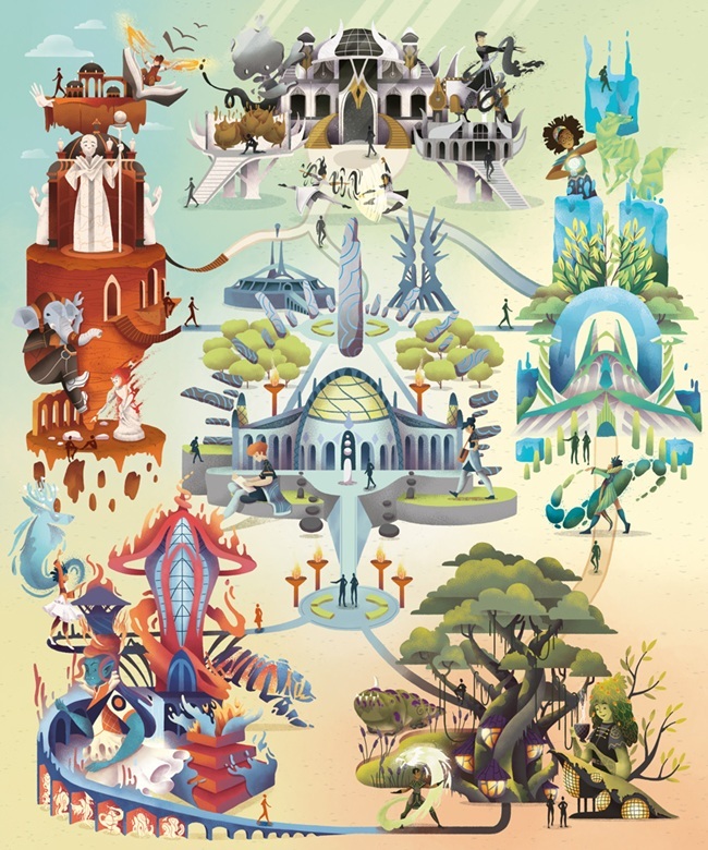 Secrets of Strixhaven is set to take place on the recurring plane Arcavios, an educational world focused on the study of five distinct colleges of magic. The five Strixhaven colleges of study are: Prismari ![]()