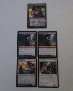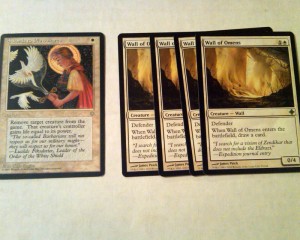 I traded my Swords for a set of Wall of Omens. Wall of Omens is really hot in standard right now. I see it being kind of like Kitchen Finks for 2010, not in a functional way, but in a trading sense. You can trade Wall of Omens for two dollars and up. It’s an uncommon so people who have extra don’t really care about them but people who need them really need them. The Walls will trade faster than Swords so I think it was the right move to trade the Swords at my first opportunity.