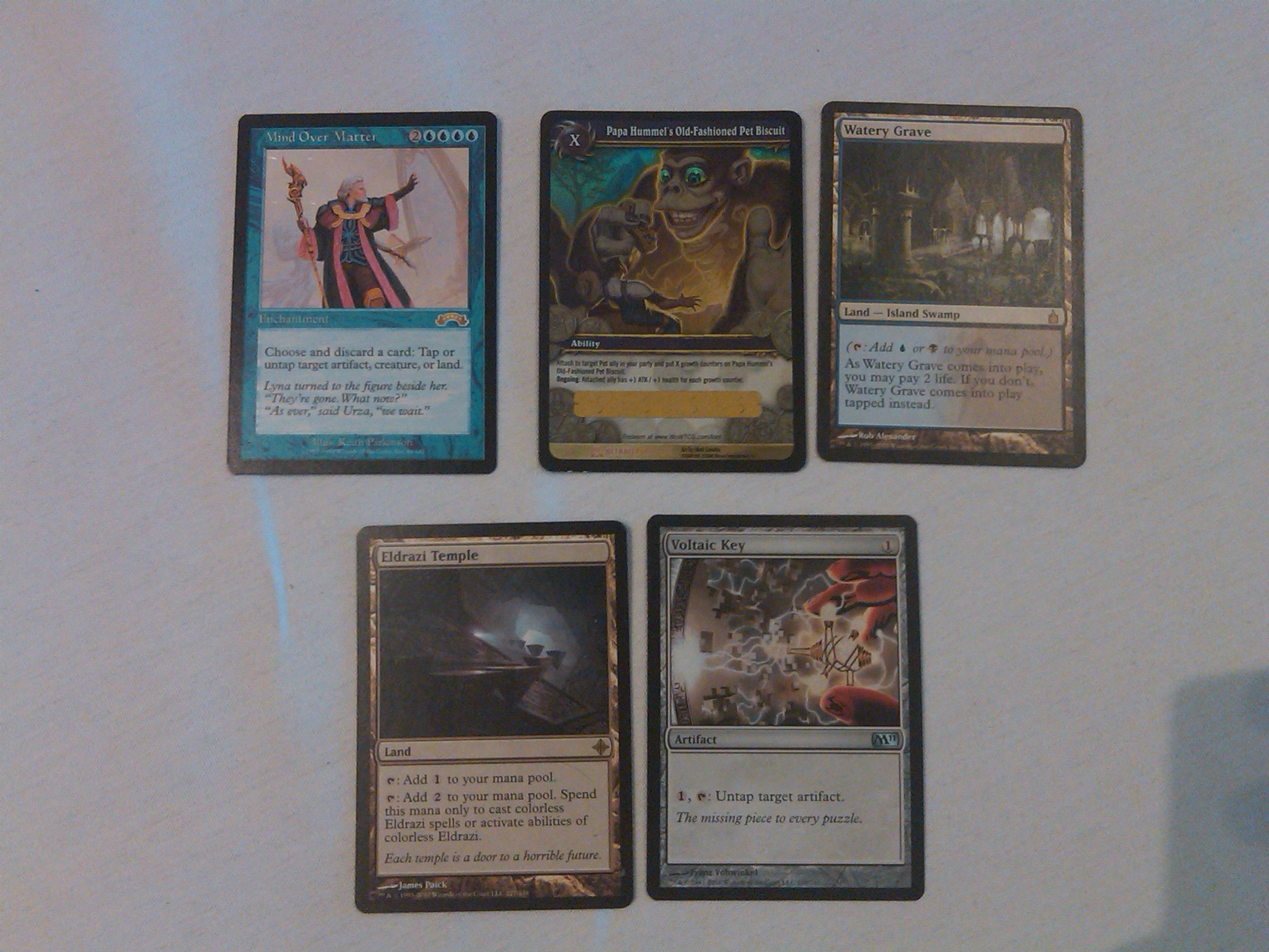 Mind Over Matter 3.49 Watery Grave 12.99 Voltaic Key .99 Eldrazi Temple 5.99 Papa Hummel's Old-Fashioned Pet Biscuit 9.99