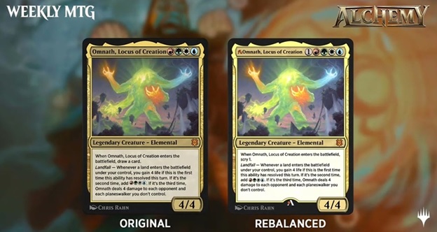 In any case, we've never really seen something this major so it's hard to say what'll happen. Is it good? Is it bad? Who knows? There're certainly some issues with it, but they're minor. Let's say you pull up an article on Alchemy or a decklist for that format and Alrund's Epiphany or Omnath, Locus of Creation gets brought up. You'll see the original card and not the new one, which can cause confusion as to what the cards do. The same goes for someone playing a deck in Alchemy for a while and then going and playing a paper Standard event where their cards do different things than online. Ultimately, I think it's a minor logistical headache but I think as players start to play these different formats and see these different card versions, they'll grow more accustomed to what is what.