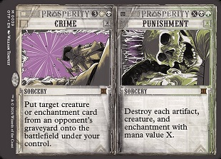 To help highlight this new unique gameplay element, Wizards has also added in an additional bonus sheet of cards similar to what we got in Wilds of Eldraine and March of the Machine. This sheet is made up entirely of cards that commit crimes, and is headlined by the previewing of Thoughtseize and Crime // Punishment.