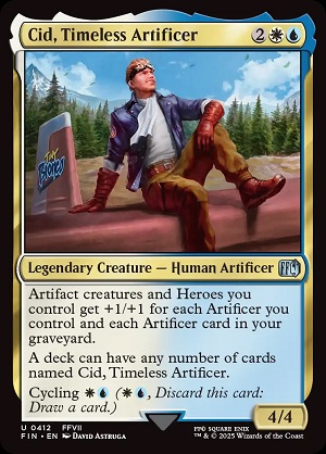 Finally, the show ended with the special revelation of Cid, Timeless Artificer. Cid is a mainstay of the Final Fantasy series, with a new one introduced every game since Final Fantasy II. To honor this, the card boasts 15 different unique versions and features the text that players can have as many copies of it as they want in their decks.