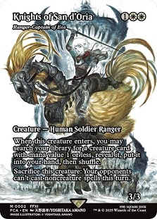Very few new reprints were revealed this week. No new reprints were shown off for the main set and all the Commander cards were already unveiled within the first week. As a result, the only new reprints were the handful of remaining Through the Ages cards left to show off. Cards like Stroke of Midnight as Memories of Nibelheim and Godo, Bandit Warlord as Gilgamesh, Weapon Collector aren't exactly the biggest hits around. However, last Saturday saw the reveal of Ranger-Captain of Eos as Knights of San d'Oria, which is a massive hit for the set. The card has reached upwards of $40-50 thanks to its increased prominence in Modern and an additional reprint is extremely welcome here.