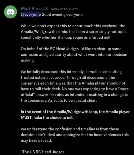 Dreamhack Atlanta is happening this weekend and with it is the US Regional Championship! Ahead of the event, however, a ruling was announced to players regarding the combo deck involving Amalia Benavides Aguirre and Wildgrowth Walker. The way this combo works is that if you can trigger either Amalia or Walker once, the other will trigger and they will go infinite, allowing Amalia to grow gigantic and blow up the board. If you can somehow make an opposing Wildgrowth Walker indestructible, though, it'll keep the combo going infinitely.