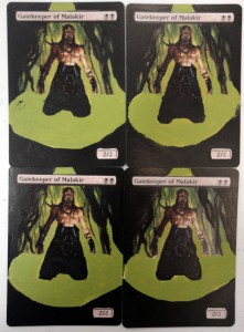 Legality is always a concern when doing a full-art alter. I’ve discussed it some here in articles and comments, and extensively with people at events. Sometimes even DCI judges don’t have all their facts straight when it comes to Wizards’ standards on altered cards (but don’t tell them I said that). As always, the final word belongs to the head judge, but Wizards’ standards are laid out here. We’ll be following these guidelines.