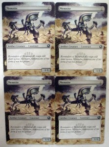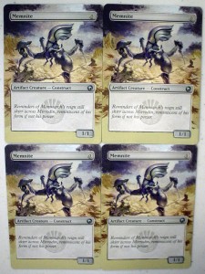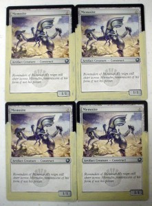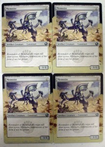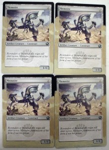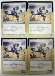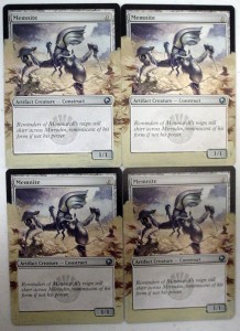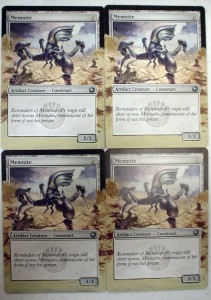 Today’s article goes out to all the little guys with big potential. We’ll be working on a little guy who just came onto the scene and has some big potential of his own, Memnite. People at the store were working this little guy into decks weeks before Scars of Mirrodin even shipped. He may only look like 3-legged robo-bug, but a turn one ‘Mountain > Memnite[card] > [card]Kuldotha Rebirth’ turn 2 ‘Mountain > Goblin Bushwhacker kicked’ is pretty good, not to mention the possibilities of ‘Trinket Mage > Memnite > Vengevine > Vengevine > Vengevine > you die, etc. I’ve seen it happen, and it ain’t pretty.