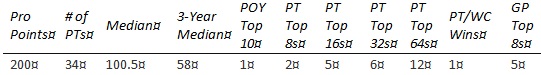 3 Throughout this analysis, Randy Buehler's brilliant but short career has been excluded from all data sets. Randy retired from the PT to go work for WOTC. The shortness of his career makes it an extreme outlier that distorts the conversation. Everyone I've spoken to about this over the years, including Randy himself, agrees that it makes sense to ignore his (again, brilliant) career for our purposes.