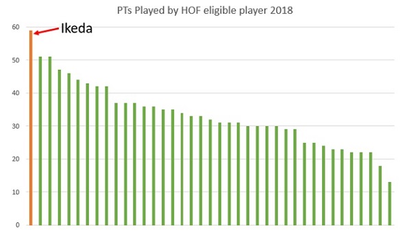 Ikeda has played, like, a lot of Pro Tours. Just sorting the folks on the ballot by number of PTs played gives you an idea.