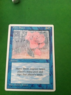 Almost immediately, I got an offer from Drew Sitte, and he sent me two cards, a Revised Stasis, and a 4th Edition Mana Short. Two very real Magic cards. They were also rares (technically). In order to save the suspense, this is what became of those two Magic cards: