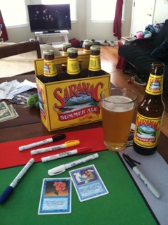 If you live in upstate New York, you undoubtedly know all about Saranac beer. Despite their commercials being scored by the unreasonably shitty band moe, they make some pretty good beers. Their summer seasonal is my favorite summer beer of all time: light and fruity, like a young J. Alexander (my only excuse for this joke is that my girlfriend is on a big America’s Next Top Model kick lately).