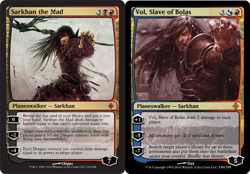 1. Vol, Slave of Bolas - WRONG - It seemed like a decent enough guess. We knew Sarkhan was on Zendikar, working for Bolas, and a little nuts. But in the end my card wasn't even close. Who would have guessed that the actual Sarkhan, the Mad would have only three negative abilities and no way to add loyalty counters?! Aside from the CONVERTED mana cost, the art (which I found in a random comic) and the high-ish loyalty... nevermind, I was WAY off. We hope you enjoyed speculating along with us nevertheless!