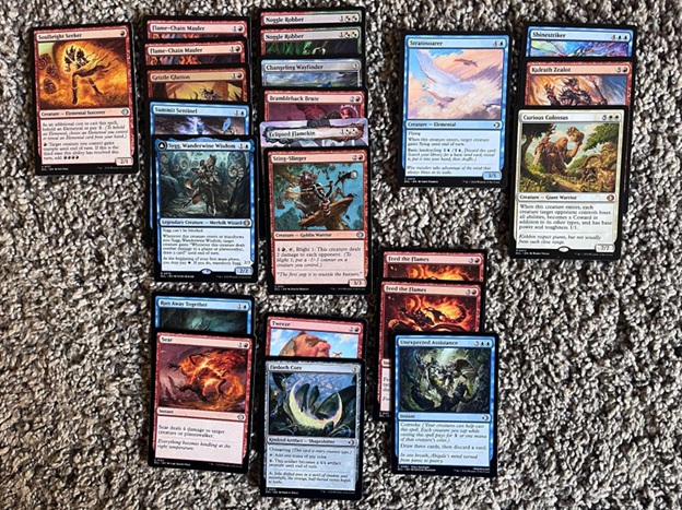 My next few picks were weird - I didn't find any clear Goblins or Elves cards, but opted for two Noggle Robbers and a Feed the Flames. With a Shinestriker making an appearance late into the pack, I opted to solidify my lane as Izzet Elementals - a deck I had yet to draft.