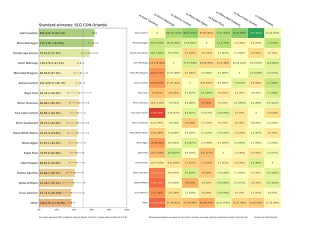 Standard is definitely in a rocky place right now with the dominance of Vivi Cauldron, a deck that put up a staggering 63% win percentage at the Spotlight Series event in Orlando, via Frank Karsten's metagame data: