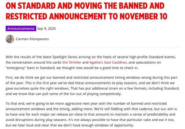 - The next Ban and Restricted announcement moves up from November 24th to November 10th