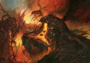 “At first, Yawgmoth was afraid of others discovering his research and goals. He hid them within the Caves of the Damned away from the prying eyes of the Thran elite. Eventually, he was able to move his plans to a new plane with the help of a planeswalker called Dyfed. It was there that he truly began experimenting with Phyresis, and it was there that his power grew. This place of experimentation and power was named by Yawgmoth himself, named after the `cure` he strove toward. It was called Phyrexia.