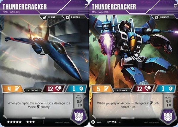 First off, we're going to have to include Thundercracker - Mach Warrior in our build. His alt-mode ability is useful in some matchups, but his bot mode ability is really what we're after here. With so many actions being generated per turn, we can't not include the one character that most benefits from the actions we play.