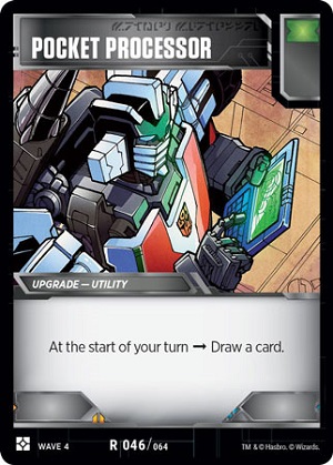 As with nearly any CCG, being able to maintain card advantage over your opponent is critical to coming out on top. More cards in hands inevitably means more options for what you can do on your turn, so you always want to look for ways to draw extra cards. Pocket Processor is exceedingly good in Limited games, as it allows for you to consistently draw those extra cards. It also has a green battle icon on it, which means getting it into your hand even if you don't draw it naturally isn't too difficult. It is a rare card, though, so if you open one of these in your packs, grab it immediately. You won't be sad that you did.