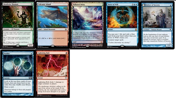 [showhide type="links3" more_text="My Play:" less_text="Hide Text" hidden="yes"] I would lead off with Volcanic Island and Delver of Secrets. We could lead off with Gitaxian Probe to get full information but we're not 100% sure that it's needed at the moment. If we need to Force of Will a card in the coming turns I'd always rather pitch a Gitaxian Probe and keep Ponder. I also like keeping Gitaxian Probe since it allows us to draw Cabal Therapy and ensure some hard hits. I don't think leading with Ponder here is correct because we're not exactly sure what kind of answers or threats we are looking for. You could leave open Pyroblast for a Ponder or Baleful Strix but that seems fairly weak. Letting the control opponent direct the game is going to end poorly and getting on the board immediately could yield better results. Even if our Delver of Secrets gets Bolted, Punishing Fired, or Pyroblasted, I think it's the safest play and opens up the maximum amount of lines for future turns. [/showhide]