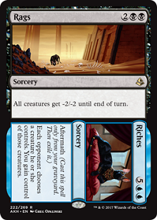 The point here isn't that the new split cards should aspire to be the next Sandman, it's just that they offer a chance to actually play with ideas that Magic has struggled to explore for almost 25 years now: how to show multiple states or ideas on the same card. Right now many split cards — not just the Amonkhet cards but split cards generally going all the way back to Invasion — feel kind of like a gimmick to me, like a clever mechanical trick and cute word game that isn't really matched on the flavor end.