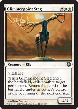 When Glimmerpoint Stag enters the battlefield, exile another target permanent. Return that card to the battlefield under its owner's control at the beginning of the next end step.