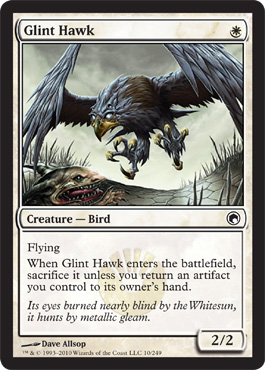 When Glint Hawk enters the battlefield, sacrifice it unless you return an artifact to its owner's hand.