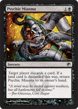 Darkslick Shores enters the battlefield tapped unless you control two or fewer other lands.