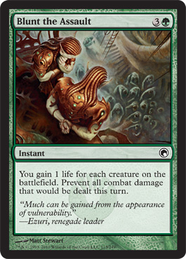 : Prevent the next 2 damage that would be dealt to target artifact creature this turn.