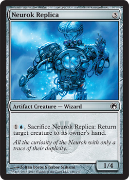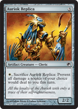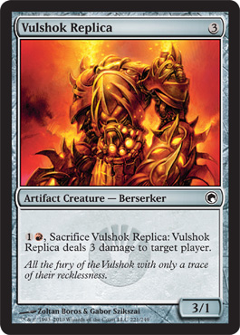 , Sacrifice Vulshok Replica: Vulshok Replica deals 3 damage to target player.