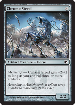 Metalcraft - As long as you control three or more artifacts, Auriok Sunchaser gets +2/+2 and has flying.