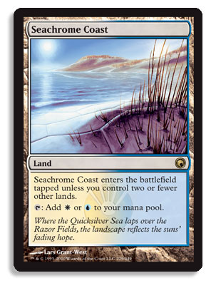 Seachrome Coast enters the battlefield tapped unless you control two or fewer other lands.