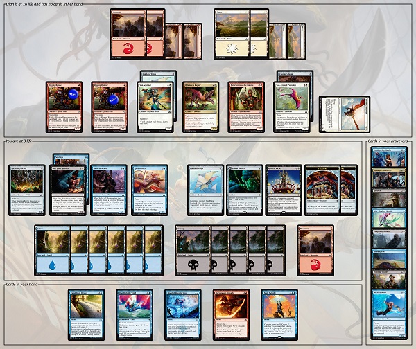As if to twist the knife a little more, your next draw is an Expel from Orazca that you could have definitely used earlier. At 3 life and facing three flyers, however, you now need to find a way to survive . . . or at least buy yourself a little more time.