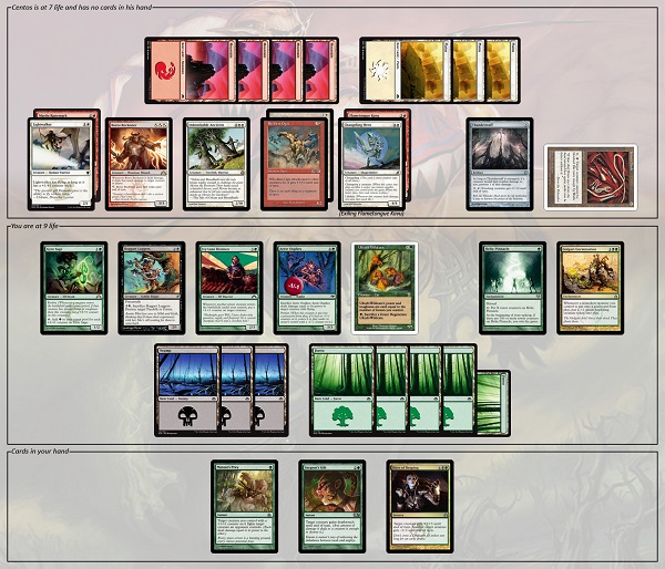 “Okay, prove it,” Centos says. “I’ll end my turn. Is there anything you want to play in response?”