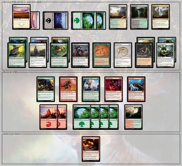 Unfortunately, that’s when Vern drew his Constricting Sliver. Since then, he’s taken out every single one of your best creatures, leaving you with a significantly reduced board.