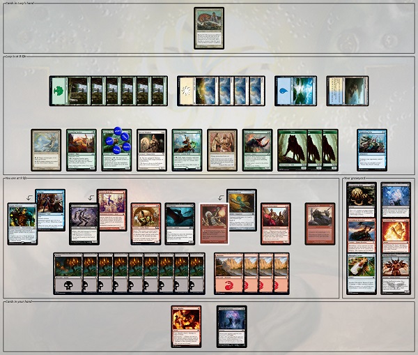 You have not yet played a land this turn. You still have a substantial number of cards remaining in your library, but you know neither the identities nor the order of those cards.