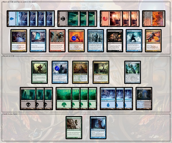 One minor variant to the above solution is to not recast Wasteland Viper as in step 5 above. This leaves your Battering Krasis as a 4/3 trampler, but that’s all you need: If your opponent blocks each of your attacking creatures and assigns Deathpact Angel to the Krasis, making it a 5/5 deathtouch trampler means that you can kill the Angel with 1 damage and trample over for the other 4.