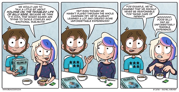 This comic has been brought to you by Semi Co-Op, a weekly webcomic about board games created by Rachel Kremer and Heinze Havinga. You can check out all of their comics on their website semicoop.com.