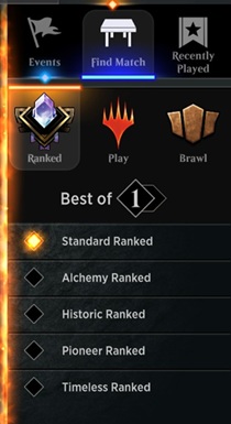 When you select "Find Match" on Arena, a number of options appear. Ranked play reveals all options to play a ranked, Constructed game of Magic. Let's review each option and decipher the differences between each.