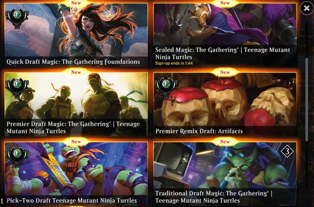 As for formats with "limited time only" vibes, there are too many to list here. Some include Direct events to win [physical] sealed product, different Cube variants, Jumpstart-like events, Qualifier Play-ins for higher stakes tournaments, Color Challenges, Mid-week events, Omniscience events, and more. The list of transient events is constantly evolving, designed to keep players coming back to the platform to see what's new.