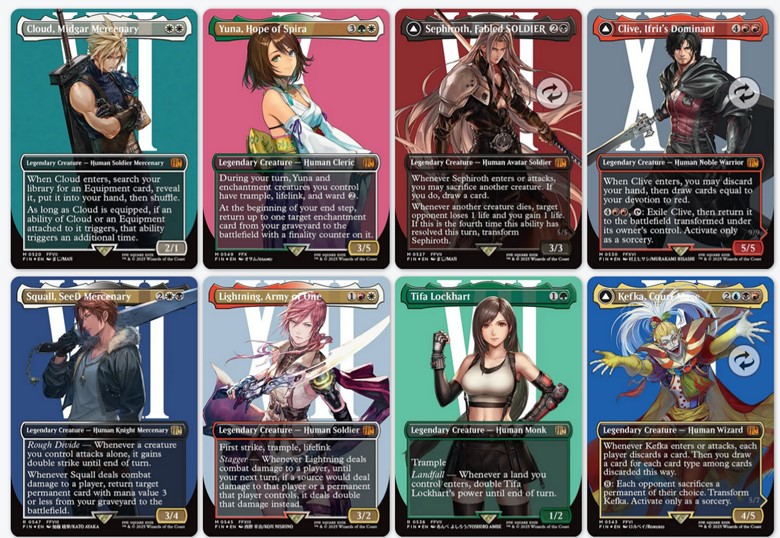 If you visit Scryfall and sort Final Fantasy cards by price, you'll find dozens of other cards intermixed with those I referenced above. It turns out there are no less than a zillion special printings, treatments, and artworks for all the rares and mythic rares in the set. The result: a ton of valuable versions of many cards exist, even if they're not the base, primary printing.