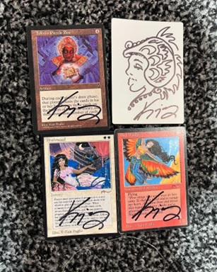 Imagine my delight when I found out my favorite classic Magic artist, Kaja Foglio, would be at the event! I have been a huge fan of her art for many years, and fondly collect cards with her signature. It was a dream to finally meet Kaja Foglio in person and obtain a few more signed cards for my collection - it is far more meaningful to do this myself in person rather than purchasing signed cards from the internet!