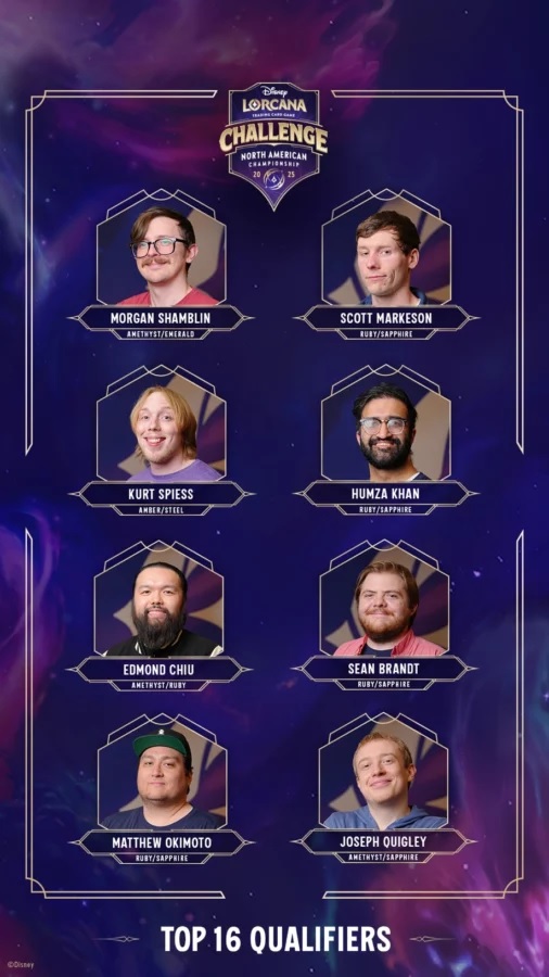 The 32 LCQ invitees plus the 96 DLC invitees brings the total to 128 players for the day 1 swiss phase, which featured the two-game match system. These players ultimately battled it out for the top 16 spots, making day 2 of the single-elimination phase that included additional prizing and a shot at an invite to the Disney Lorcana World Championship.